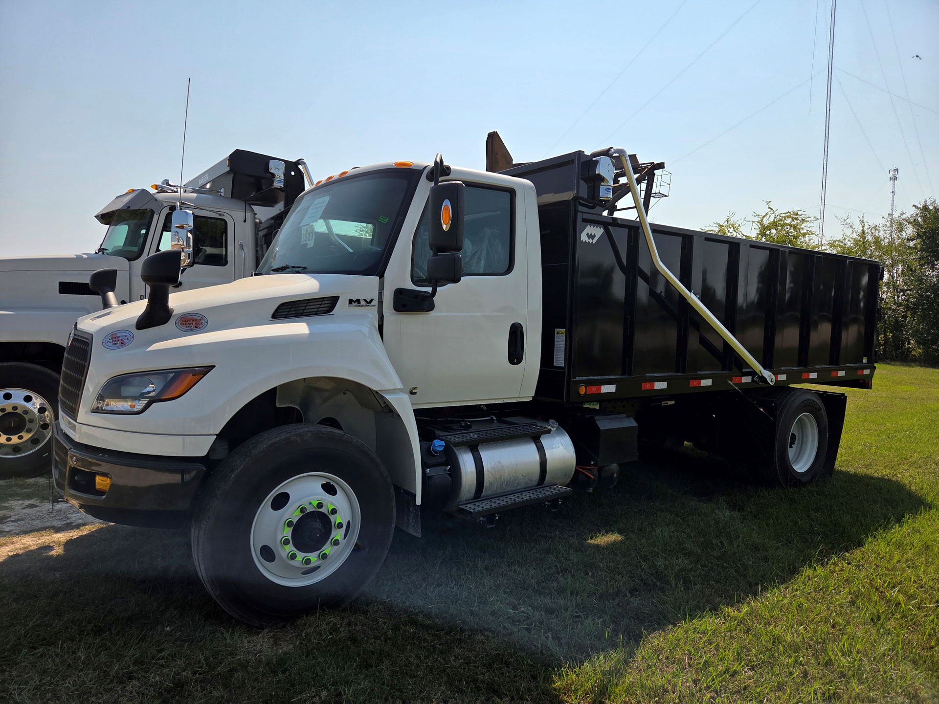 To maximize convenience, this custom dumping flatbed is equipped with a Donovan electric tarp system featuring cab controls. Operators can easily manage load coverage without leaving the truck, saving valuable time while maintaining safety. The tarp design is user-friendly, and the electric function eliminates the need for manual adjustments.